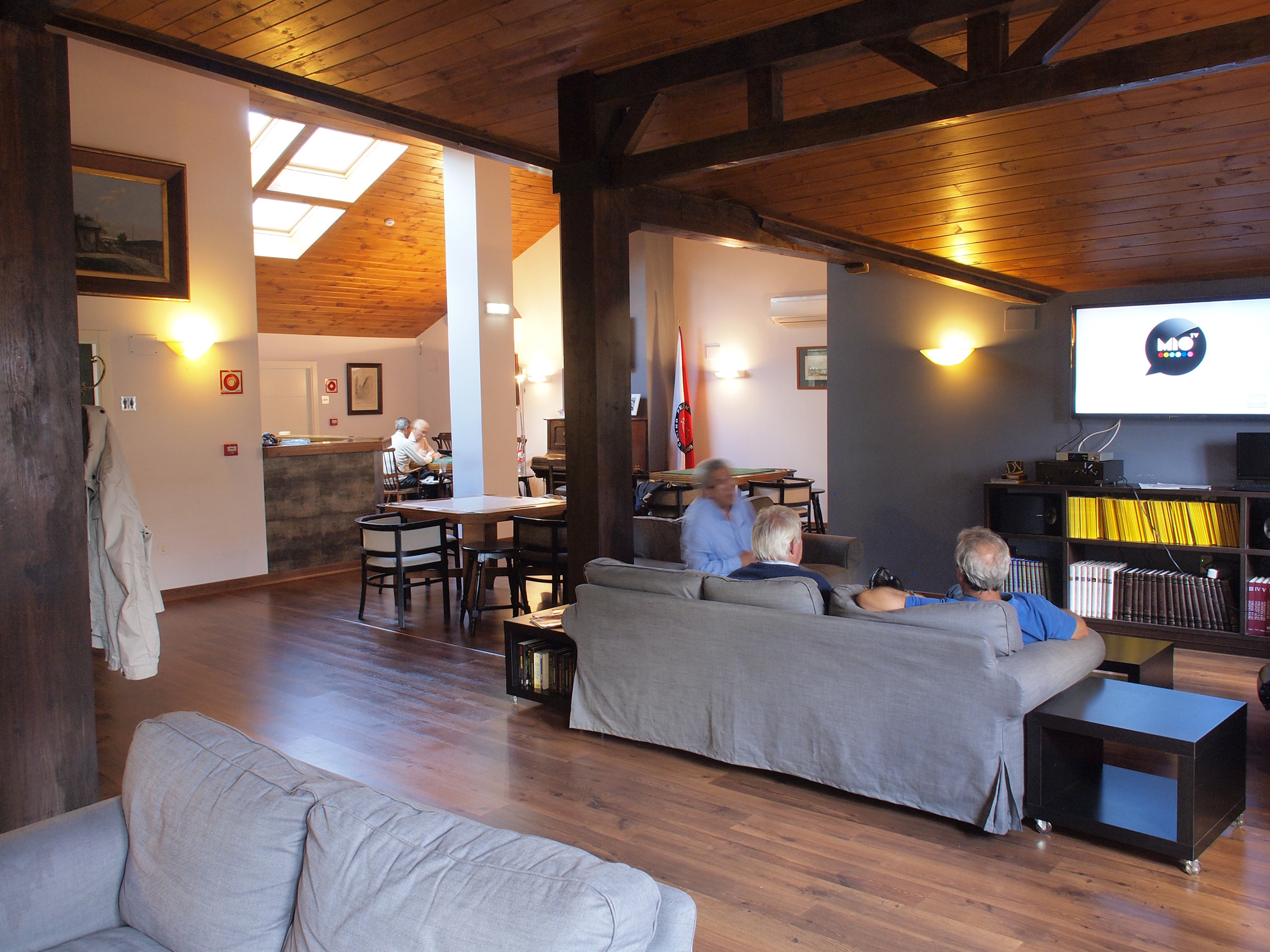 Esta sala se haya ubicada bajo la fachada y ocupa practicamente la totalidad de la planta del edificio. En el año 2010 los socios decidieron por votación acometer el cambio del tejado así como la remodelación de sus desvanes debido a su mal estado. Antiguamente existían muchas dependencias, la mayoría no utilizadas. La reforma culminó en este espacio diáfano en el que los socios pueden disfrutar con muchas opciones. Desde jugar una partida de mus hasta ver la televisión pasando por jugar al billar o escuchar música tranquilamente sentado. Además cuenta con una pequeña barra de bar para preparar bebidas o cafés. El sistema de pago funciona igual que en la sociedad gastronómica. Se apuntan las bebidas consumidas en una nota, se añade el dinero en metálico y todo ello se mete en un sobre y se deposita en el buzón existente en el recinto. En esta sala está también la oficina del secretario así como una sala privada para reuniones de los socios.Dicha sala es también muy utilizada para diferentes eventos como presentaciones de libros y presentación de cantineras el día 28 de junio.